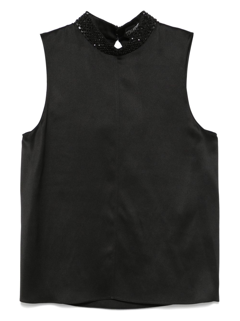 silk top Highlights - Black - Rear button fastening - Bead embellishment - Sleeveless Made in Italy Composition Lining: Silk 100% Outer: Silk 100%, Polyester 50%, glass 50% SIZE & FIT Model measurements Height 5 ft 10 in(1.78 m) Bust/Chest 32.67 in(83 cm) Hips 35.43 in(90 cm) Waist 23.22 in(59 cm) FittingInformation Designed to be unstructured, offering a loose fit throughout Made from a midweight non-stretch fabric