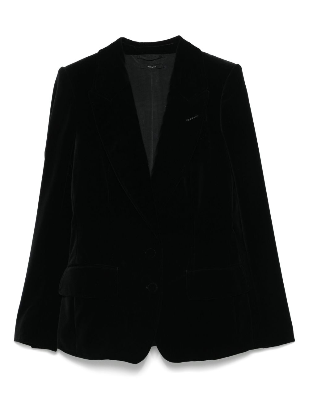 single-breasted blazer Highlights - Black - Front button fastening - Buttoned cuffs - Two front flap pockets - Peak lapels Made in Italy Composition Outer: Cotton 100% Lining: Silk 90%, Cotton 70%, Viscose 20%, Elastane 10%, Modal 10% SIZE & FIT Model measurements Height 5 ft 11 in(1.8 m) Bust/Chest 31.49 in(80 cm) Hips 36.61 in(93 cm) Waist 24.4 in(62 cm)