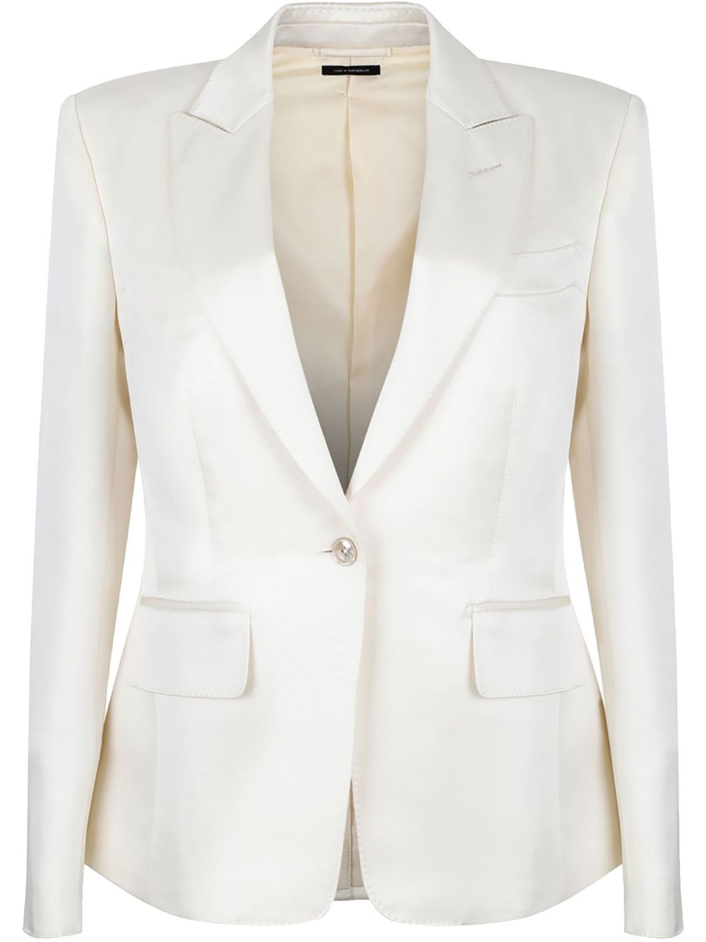 single-breasted blazer Highlights - White - Front button fastening - Classic lapels - Two side flap pockets - Long sleeves Made in Italy Composition Wool 57%, Silk 43%