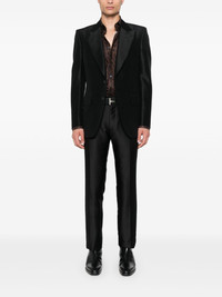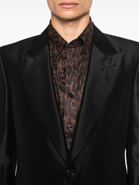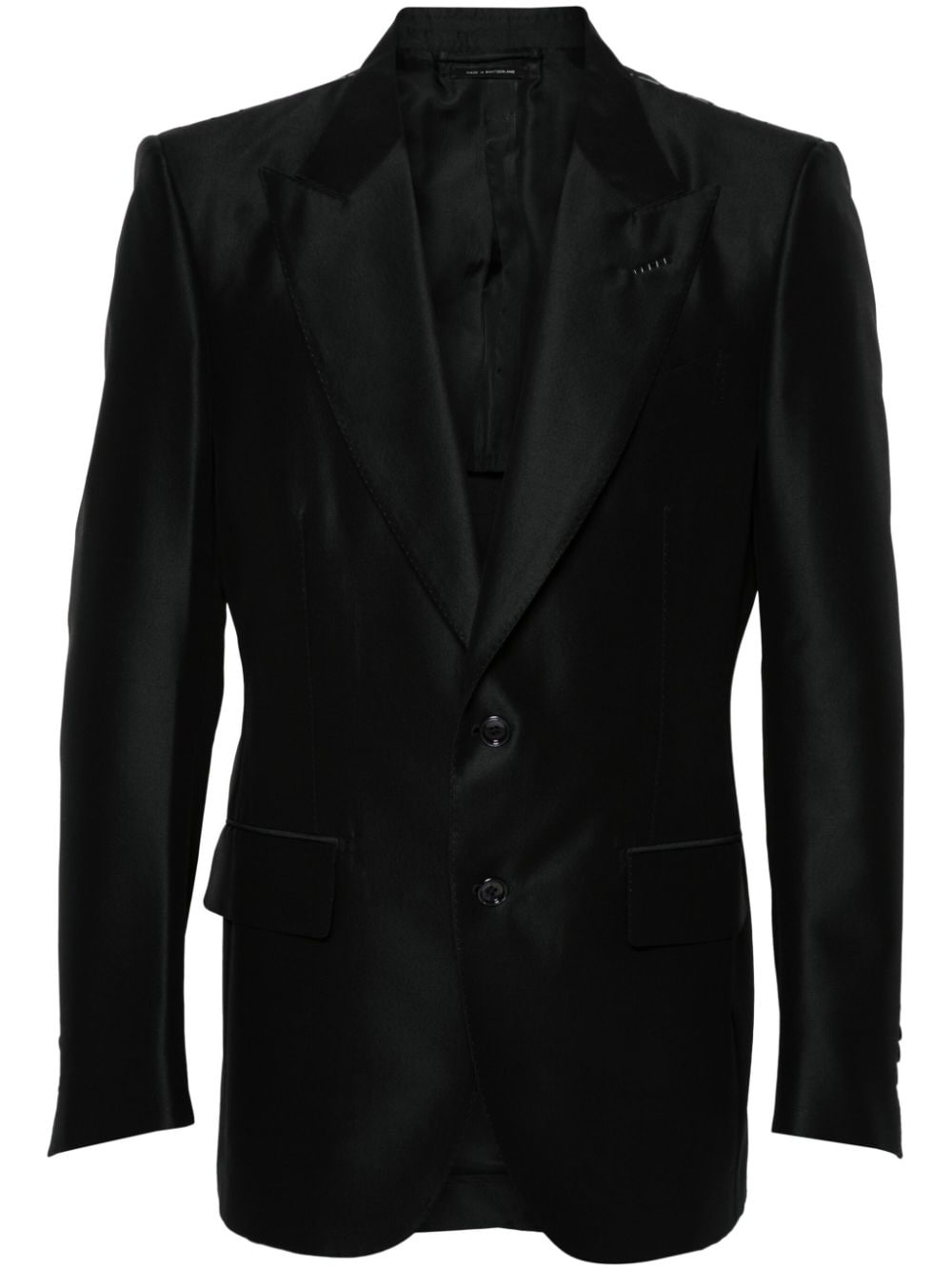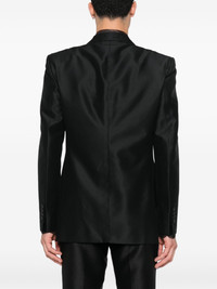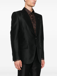 single-breasted blazer Highlights - Black - Wool blend - Front button fastening - Peak lapels - Long sleeves - Buttoned-cuff sleeves - Chest welt pocket - Two side flap pockets - Central rear vent - Partial lining - Multiple internal slip pockets - Straight hem Imported Composition Outer: Wool 84%, Silk 16% Lining: Cupro 59%, Silk 41% SIZE & FIT Model measurements Height 6 ft 1 in(1.85 m) Bust/Chest 35.82 in(91 cm) Hips 37.79 in(96 cm) Waist 29.13 in(74 cm) FittingInformation Designed for a slim fit, offering a comfortable fit that sits just away from the body The internal shoulder pads offer a structured shape Made from a midweight non-stretch fabric Washing instructions Dry Clean Only