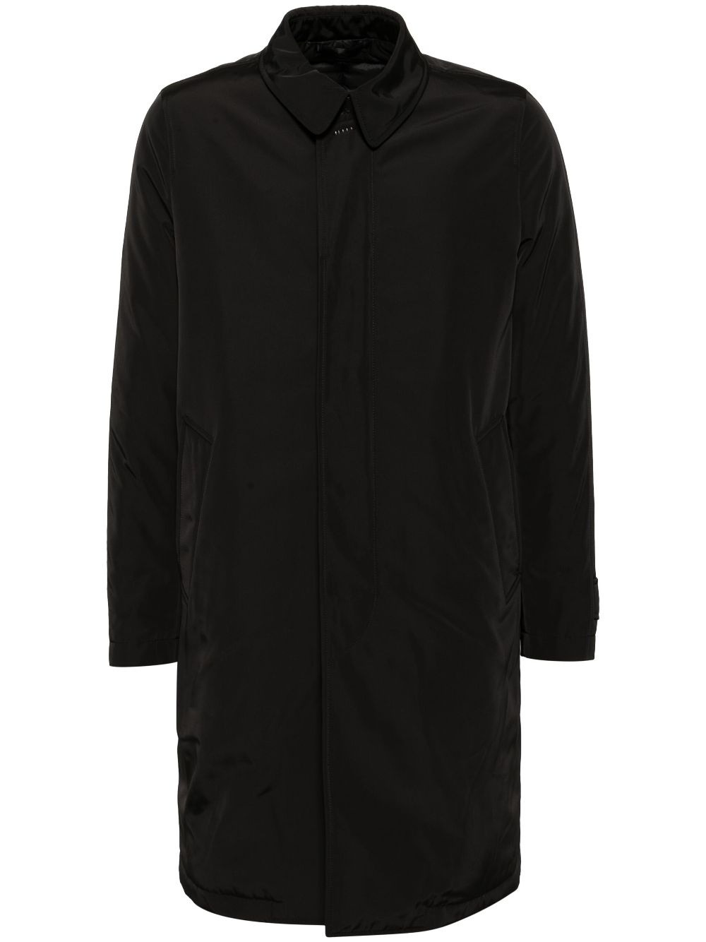 single-breasted coat Highlights - Black - Front button and zip fastening - Two side welt pockets - Padded design - Full lining Made in Italy Composition Polyester 100% SIZE & FIT Model measurements Height 6 ft 2 in(1.87 m) Bust/Chest 33.07 in(84 cm) Hips 35.43 in(90 cm) Waist 26.77 in(68 cm) FittingInformation Designed to be unstructured, offering a loose fit throughout The vented hem offers movement at the rear Made from a padded non-stretch fabric, giving it no natural elasticity