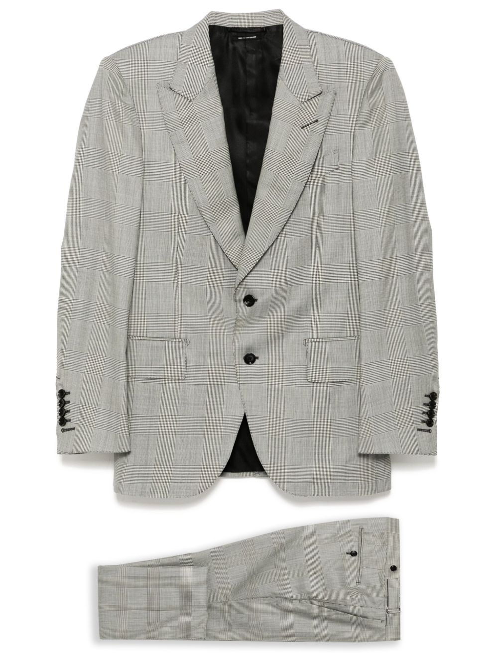 single-breasted suit Highlights - Black/grey - Front button fastening - Two front flap pockets - Concealed front button, hook and zip fastening - Two side inset pockets Made in Italy Composition Outer: Wool 98%, Elastane 2% Lining: Cupro 59%, Silk 41% SIZE & FIT Model measurements Height 6 ft 2 in(1.88 m) Bust/Chest 34.25 in(87 cm) Hips 34.64 in(88 cm) Waist 26.77 in(68 cm)