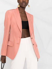 single-breasted tailored blazer Whoever said orange is the new pink.... has never seen this TOM FORD blazer. In a tailored cut, this pink jacket belongs in every modern person's wardrobe. No objection. Made in Italy Composition Lining: Viscose 54%, Polyester 46% Outer: Acetate 100% SIZE & FIT Model measurements Height 5 ft 11 in(1.8 m) Bust/Chest 32.67 in(83 cm) Hips 36.22 in(92 cm) Waist 24.4 in(62 cm) FittingInformation This piece fits true to size. We recommend you get your regular size Cut for a slim fit Made with a mid-weight non-stretch fabric Measurement BUST 33.07 in(84 cm) LENGTH 26.37 in(67 cm) WAIST 29.92 in(76 cm) SLEEVE LENGTH 24.4 in(62 cm) Shoulder Width 14.96 in(38 cm) Washing instructions Dry Clean Only