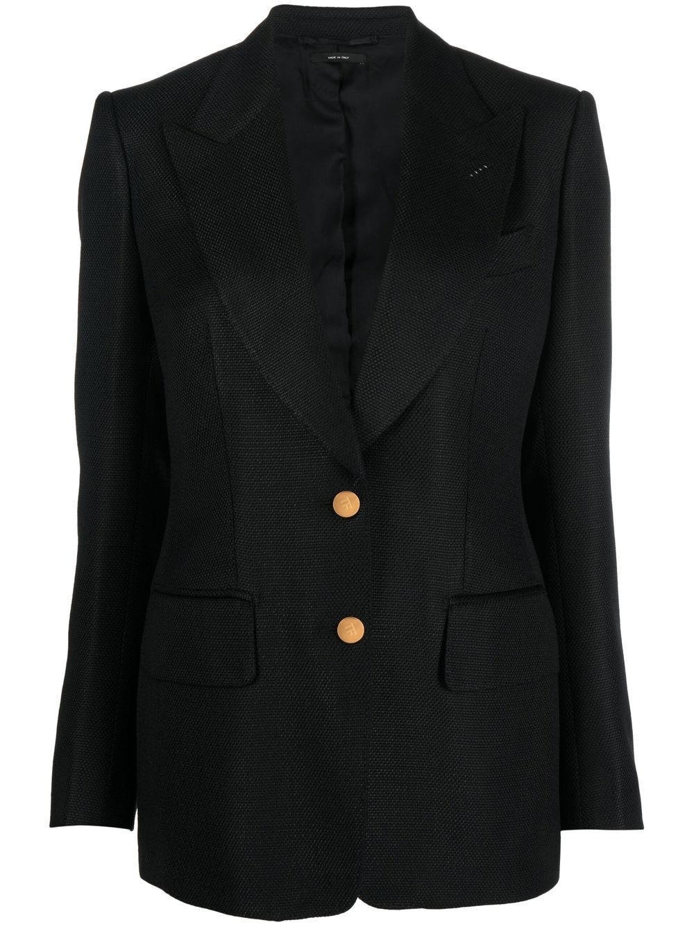 single-breasted tailored blazer jet black classic lapels front button fastening long sleeves two side flap pockets Made in Italy Composition Outer: Viscose 98%, Polyamide 2% Lining: Viscose 54%, Polyester 46% SIZE & FIT Model measurements Height 5 ft 9 in(1.76 m) Bust/Chest 33.07 in(84 cm) Hips 34.64 in(88 cm) Waist 25.59 in(65 cm) FittingInformation This piece fits true to size. We recommend you get your regular size Cut for a slim fit Made with a mid-weight non-stretch fabric