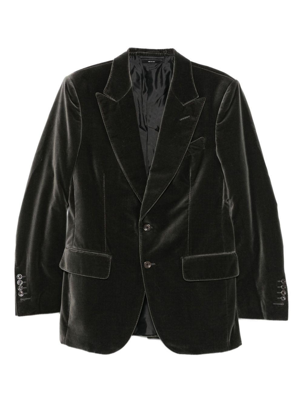 single-breasted velvet blazer Highlights - Dark grey - Velvet texture - Two-button fastening - Notched lapel - Flap pockets - Long sleeves Made in Italy Composition Lining: Cupro 59%, Silk 41% Outer: Cotton 100% SIZE & FIT Model measurements Height 6 ft 1 in(1.85 m) Bust/Chest 35.82 in(91 cm) Hips 37.79 in(96 cm) Waist 29.13 in(74 cm) Washing instructions Dry Clean Only
