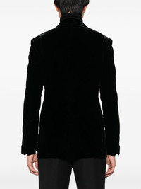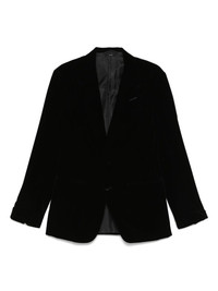 single-breasted velvet blazer Highlights - Black - Front button fastening - Peak lapels - Two front jetted pockets - Buttoned-cuff sleeves Made in Italy Composition Outer: Viscose 69%, Cupro 31% Lining: Cupro 59%, Silk 41% SIZE & FIT Model measurements Height 6 ft 2 in(1.88 m) Bust/Chest 37.4 in(95 cm) Hips 37.79 in(96 cm) Waist 30.31 in(77 cm) FittingInformation Designed for a slim fit, offering a comfortable fit that sits just away from the body The vented hem offers movement at the rear Made from a midweight non-stretch fabric
