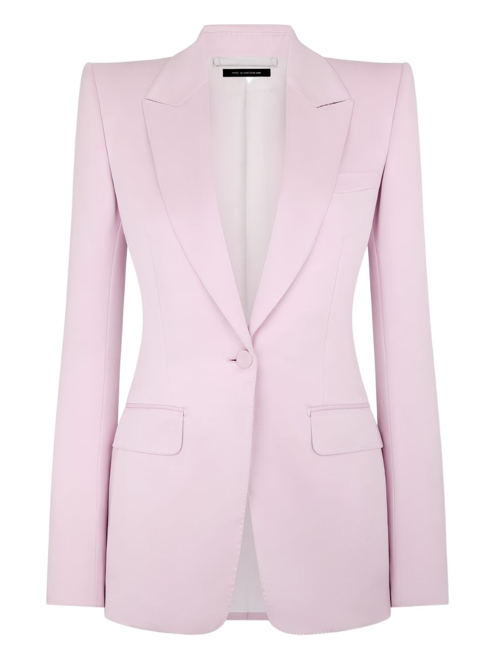 single-button blazer Highlights - Orchid pink - Single button fastening - Peaked lapels - Flap pockets - Straight hem Imported Composition Cotton 61%, Silk 39% Washing instructions Read Manufacturer Guidelines