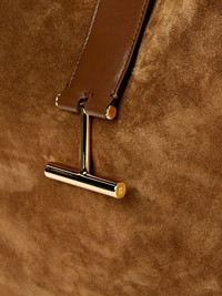 small Tara suede shoulder bag TOM FORD encapsulates its polished aesthetic with the Tara shoulder bag. Crafted from supple calf suede, its sleek silhouette features a partitioned compartment with a zip-fastening pocket to provide storage room to keep essentials organised, whilst the adjustable, detachable straps allow for custom styling. It is illuminated by gold-tone hardware and a hanging T Signature charm. Highlights - Camel brown - Calf suede - Logo charm - Gold-tone hardware - Magnetic fastening - Adjustable top handle - Single detachable top handle - Adjustable detachable shoulder strap - Partitioned compartment - Internal zip-fastening pocket - Internal logo patch - Microfibre lining Imported Composition Outer: Calf Leather 100%