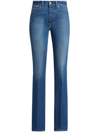 stonewashed flared jeans Highlights - Blue - Cotton - Stonewashed - Whiskering effect - Applique logo - Belt loops - Concealed fly and button fastening - Flared - Classic five pockets Made in Italy Composition Lining: Cotton 100% Outer: Cotton 100%, Polyester 68%, Polyurethane 32% Washing instructions Read Manufacturer Guidelines