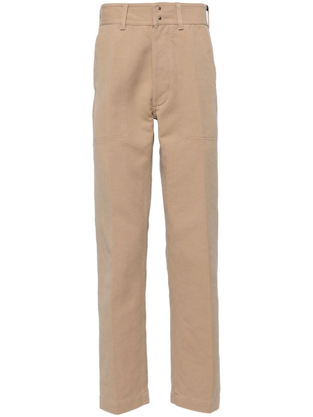 straight-leg trousers Highlights - Beige - Cotton - Pressed crease - Mid-rise - Belt loops - Concealed front fastening - Two side slash pockets - Two rear flap pockets - Straight leg Made in Italy Composition Cotton 100% SIZE & FIT Model measurements Height 6 ft 2 in(1.87 m) Bust/Chest 34.25 in(87 cm) Hips 36.22 in(92 cm) Waist 29.52 in(75 cm) FittingInformation Designed for a tapered leg, offering a loose unrestricted fit over the leg with a closer fit towards the ankle Made from a midweight non-stretch fabric This piece fits true to size – take your usual size Washing instructions Dry Clean Only