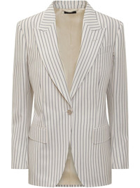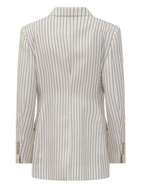 striped blazer Highlights - White - Button fastening - Chest welt pocket - Two side flap pockets - Long sleeves Made in Italy Composition Outer: Wool 79%, Silk 17%, Polyester 4% Lining: Cupro 50%, Silk 50%