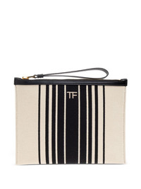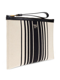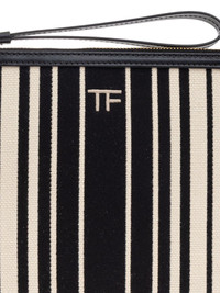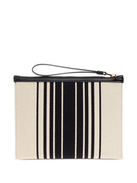 striped canvas clutch Highlights - Cream - Black striped design - Top zip closure - Logo detailing - Detachable wrist strap Made in Italy Composition Outer: Cotton 100%, Leather 100% SIZE & FIT Measurement HEIGHT 7.08 in(18 cm) WIDTH 9.44 in(24 cm)