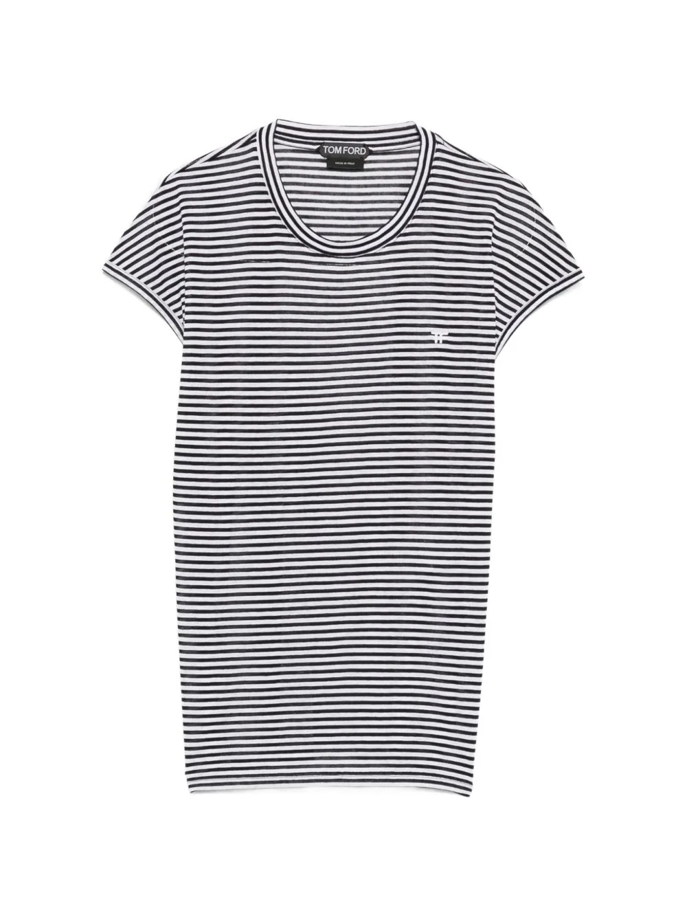 STRIPED T-SHIRT WITH TONAL TF EMBROIDERED LOGO