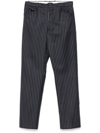 striped trousers Highlights - Navy blue - Concealed front button, hook and zip fastening - Belt loops - Two rear jetted pockets Made in Italy Composition Lining: Cupro 59%, Silk 41% Outer: Wool 100% SIZE & FIT Model measurements Height 5 ft 10 in(1.78 m) Bust/Chest 24.4 in(62 cm) Hips 35.43 in(90 cm) Waist 31.88 in(81 cm) FittingInformation Designed with a flared hem, these trousers allow for a close fit at the waist with a slim fit over the leg and widening towards the hem Made from a midweight non-stretch fabric