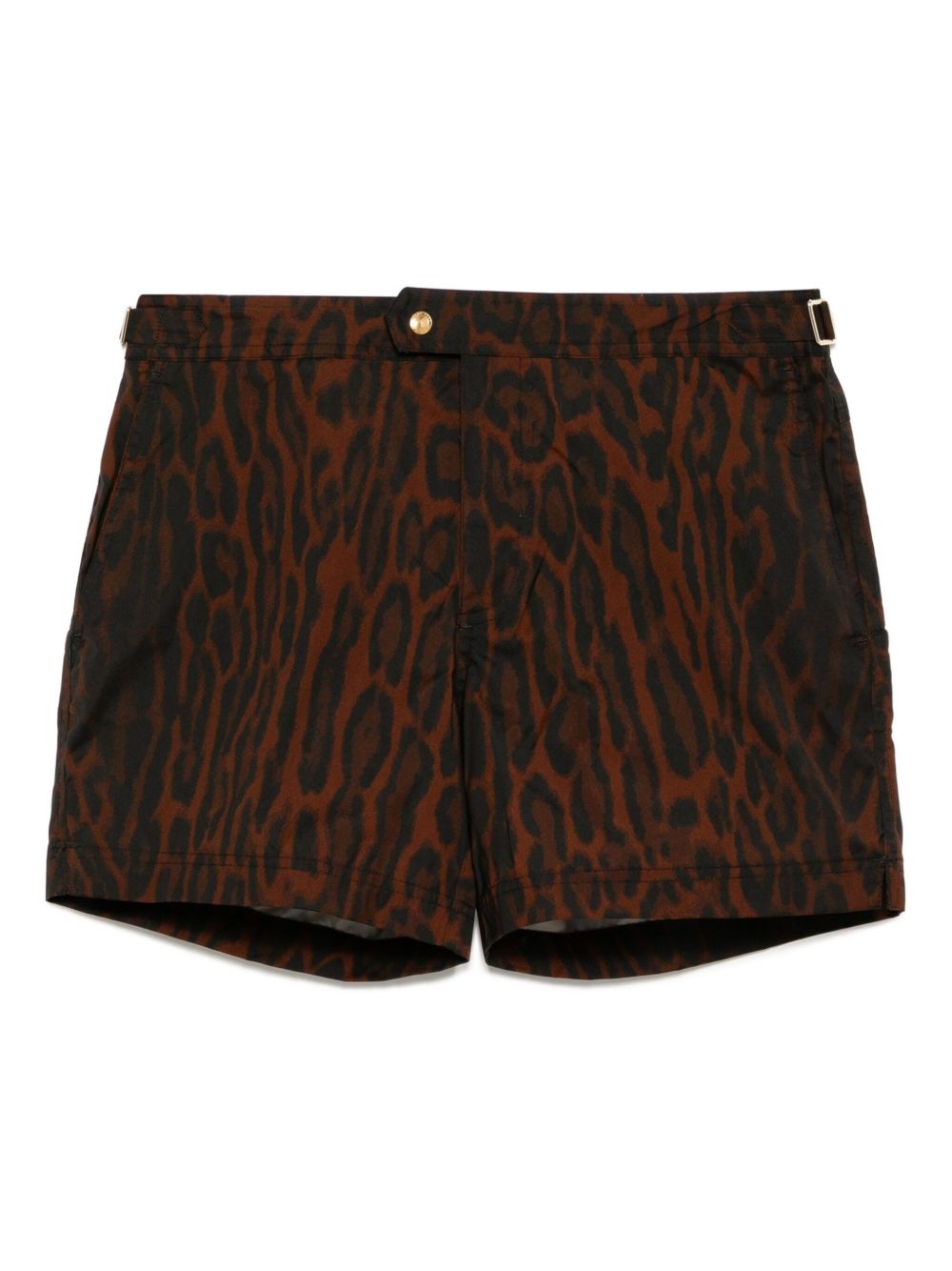 Straight-Leg Mid-Length Ocelot-Print Swim Shorts Brown