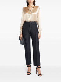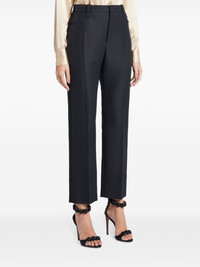 tailored straight-leg trousers Highlights - Black - Silk blend - High-waisted - Belt loops - Concealed front fastening - Straight leg - Tailored cut Made in Italy Composition Outer: Virgin Wool 57%, Viscose 43% Lining: Silk 50%, Cupro 50% SIZE & FIT FittingInformation Designed for a straight-leg fit, these trousers allow for a close fit at the waist and an unrestricted, comfortable fit over the leg Made from a midweight non-stretch fabric