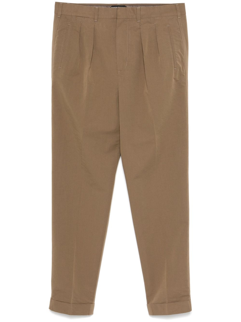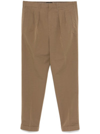 tailored trousers Highlights - Barley brown - Concealed front button, hook and zip fastening - Belt loops - Two front jetted pockets - Two rear button-fastening pockets Made in Italy Composition Outer: Cotton 65%, Silk 35% Lining: Cotton 70%, Viscose 20%, Modal 10% SIZE & FIT Model measurements Height 6 ft 0 in(1.84 m) Bust/Chest 35.82 in(91 cm) Hips 37 in(94 cm) Waist 28.34 in(72 cm) FittingInformation Designed for a tapered leg, offering a loose unrestricted fit over the leg with a closer fit towards the ankle Made from a midweight non-stretch fabric