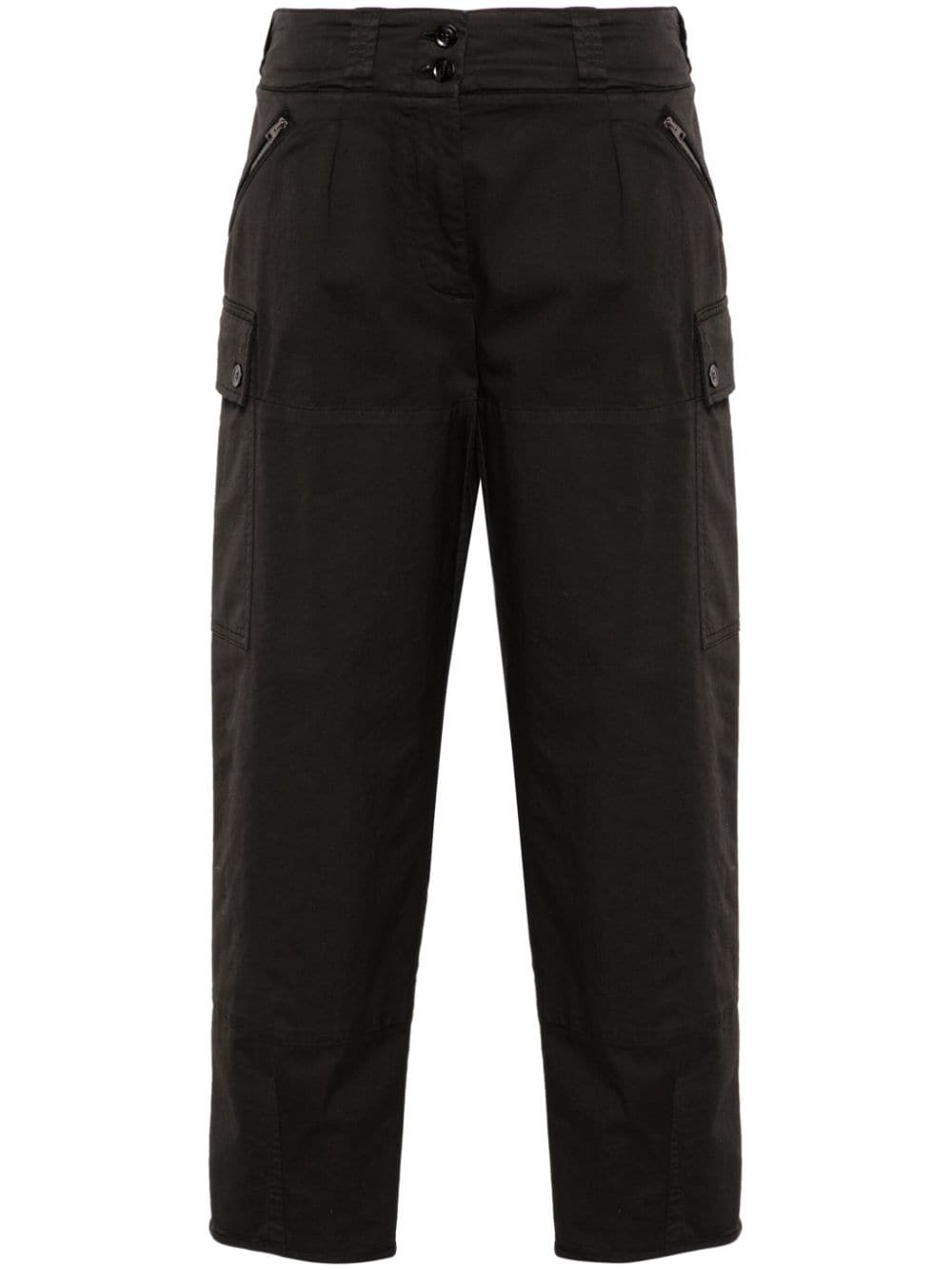 tapered cropped trousers TOM FORD offers a utilitarian style with these trousers. Cut from stretch cotton, they're fitted with multiple pockets for easy storage. Highlights - Black - Cotton blend - Belt loops - Front button and zip fastening - Tapered leg - Two side zip-fastening pockets - Two side cargo pockets - Two rear button-fastening pockets - Split cuffs - Cropped leg Made in Italy Composition Outer: Cotton 98%, Elastane 2% Lining: Cotton 70%, Viscose 20%, Modal 10% SIZE & FIT Model measurements Height 5 ft 10 in(1.78 m) Bust/Chest 31.49 in(80 cm) Hips 35.03 in(89 cm) Waist 23.62 in(60 cm) FittingInformation Designed for a tapered fit, these trousers allow for a close fit at the waist and a loose unrestricted fit over the leg with a closer fit towards the ankle Made from a midweight stretch fabric, this piece offers elasticity and flexibility when worn This piece fits true to size – take your usual size Washing instructions Dry Clean Only
