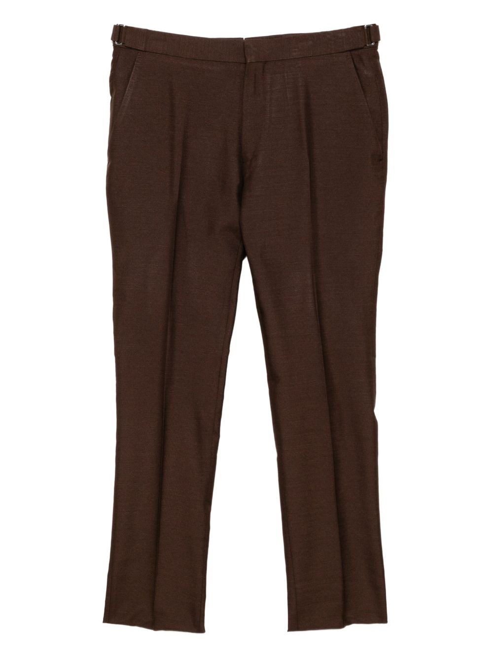 tapered-leg trousers Highlights - Dark brown - Concealed front zip fastening - Two side slash pockets Made in Italy Composition Cupro 100% Lining: Silk 100% Washing instructions Dry Clean Only