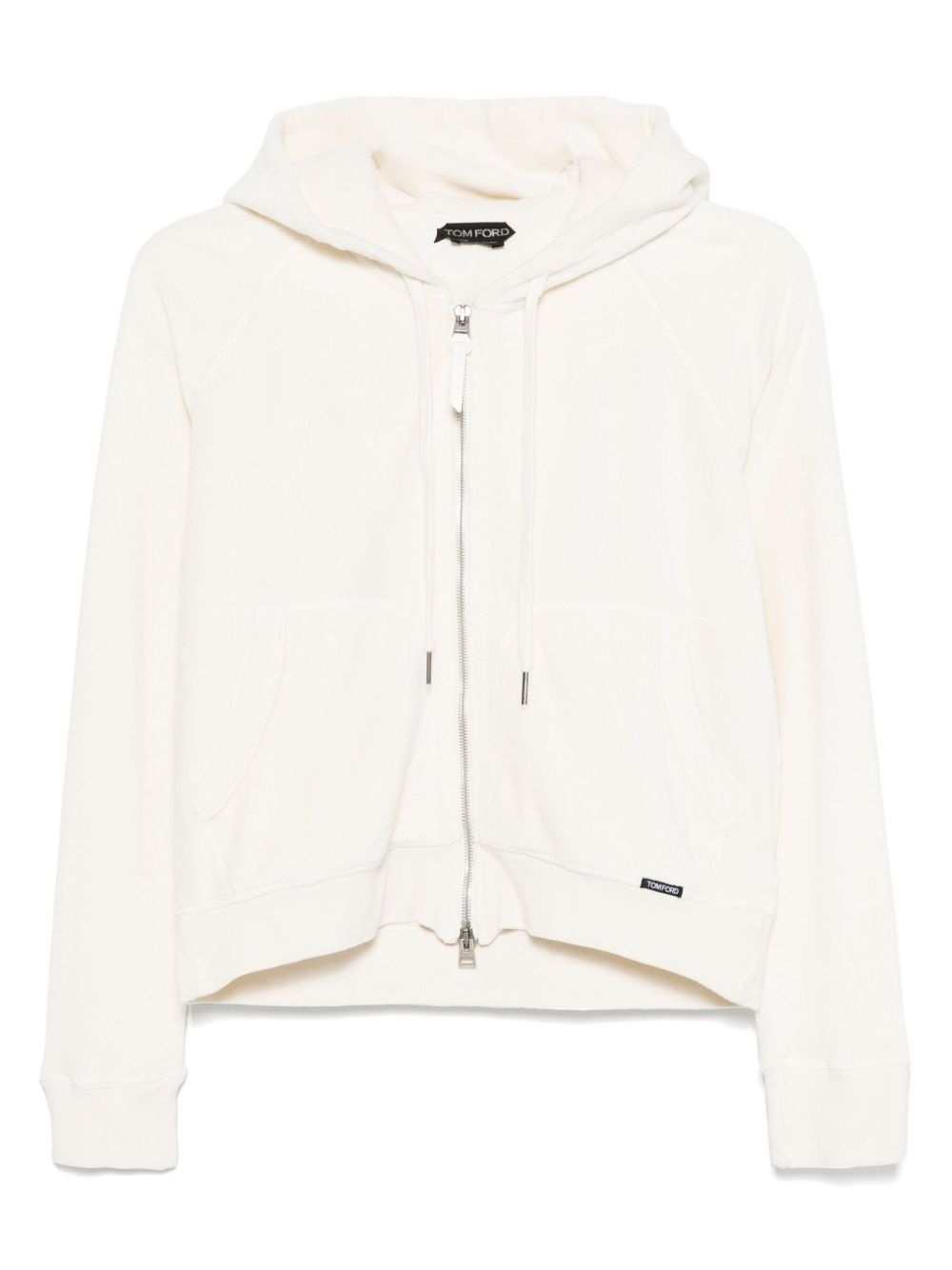 terrycloth hoodie Highlights - Light beige - Front two-way zip fastening - Drawstring hood - Two side slit pockets - Ribbed trim Imported Composition Lamb Skin 100%, Cotton 82%, Polyamide 18% SIZE & FIT Model measurements Height 5 ft 9 in(1.75 m) Bust/Chest 31.88 in(81 cm) Hips 34.64 in(88 cm) Waist 24.01 in(61 cm) FittingInformation Designed for a relaxed fit, this piece allows for comfort and movement when worn Made from a midweight non-stretch fabric, this piece offers minimal elasticity when worn