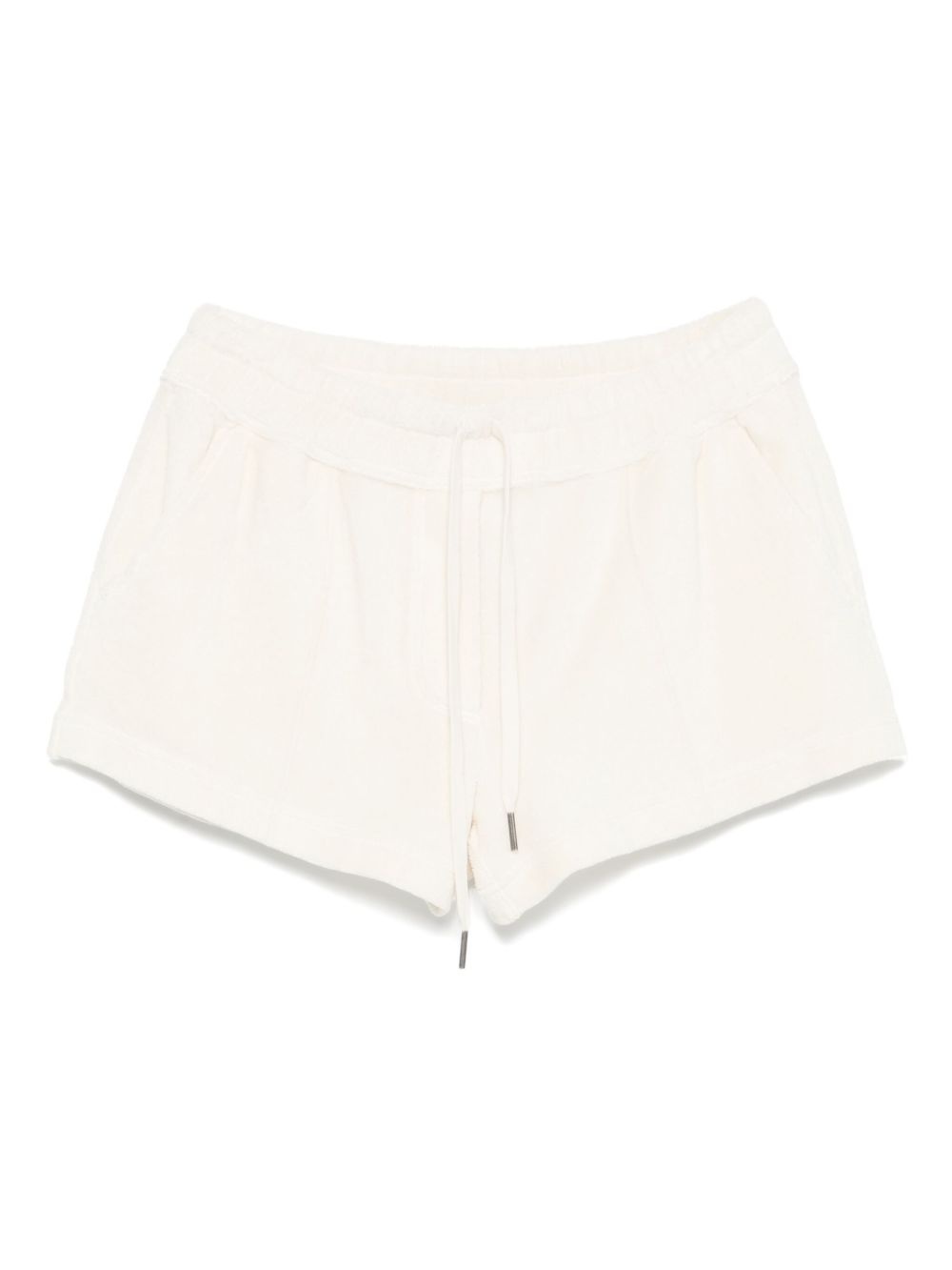 terrycloth shorts Highlights - Light beige - Elasticated drawstring waistband - Two diagonal pockets to the sides - Two rear welt pockets - Raised seam detail Imported Composition Cotton 82%, Polyamide 18% SIZE & FIT Model measurements Height 5 ft 10 in(1.78 m) Bust/Chest 32.67 in(83 cm) Hips 35.43 in(90 cm) Waist 23.22 in(59 cm) FittingInformation Designed for a slim fit that sits just away from the body offering a close yet comfortable fit Adjust this piece’s waistband to your preference using the drawstring Made from a midweight non-stretch fabric