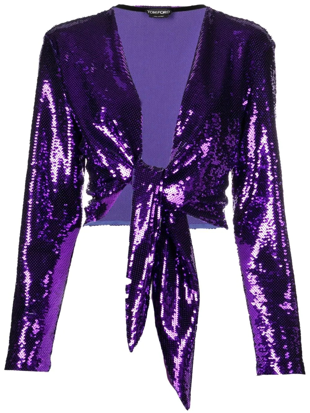 tie-fastening sequinned blouse American brand Tom Ford takes a bold approach with this silk blouse: fully sequined, the front tie fastening adds to a daring look. Made in Italy Composition Polyester 100%, Silk 100%, Polyamide 84%, Spandex/Elastane 16% SIZE & FIT Model measurements Height 5 ft 10 in(1.78 m) Bust/Chest 30.31 in(77 cm) Hips 36.61 in(93 cm) Waist 24.8 in(63 cm) FittingInformation This piece fits true to size. We recommend you get your regular size Cut for a slim fit Made with a mid-weight fabric Washing instructions Dry Clean Only