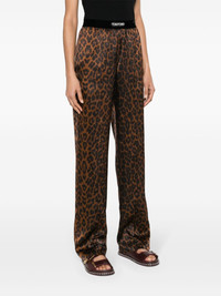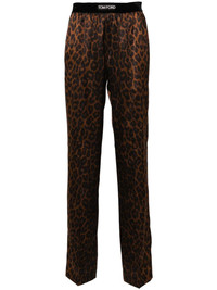 leopard-print silk pyjama bottoms Cut from pure silk with a touch of stretch, these pyjama trousers by Tom Ford are characterised by their bold leopard-print pattern. Held with an elasticated logo waistband, they fall to a relaxed, straight leg. Highlights - Brown/black - Stretch-silk - Leopard print - Satin finish - Mid-rise - Elasticated logo waistband - Two side slit pockets - Two rear patch pockets - Straight leg Made in Italy Composition Silk 94%, Elastane 6% SIZE & FIT Model measurements Height 5 ft 10 in(1.78 m) Bust/Chest 33.07 in(84 cm) Hips 36.61 in(93 cm) Waist 24.8 in(63 cm) FittingInformation Designed for a straight-leg fit, these trousers allow for a close fit at the waist and an unrestricted, comfortable fit over the leg The elasticated waist allows for a comfortable fit Made from a midweight stretch fabric, this piece offers elasticity and flexibility when worn This piece fits true to size – take your usual size Washing instructions Dry Clean Only
