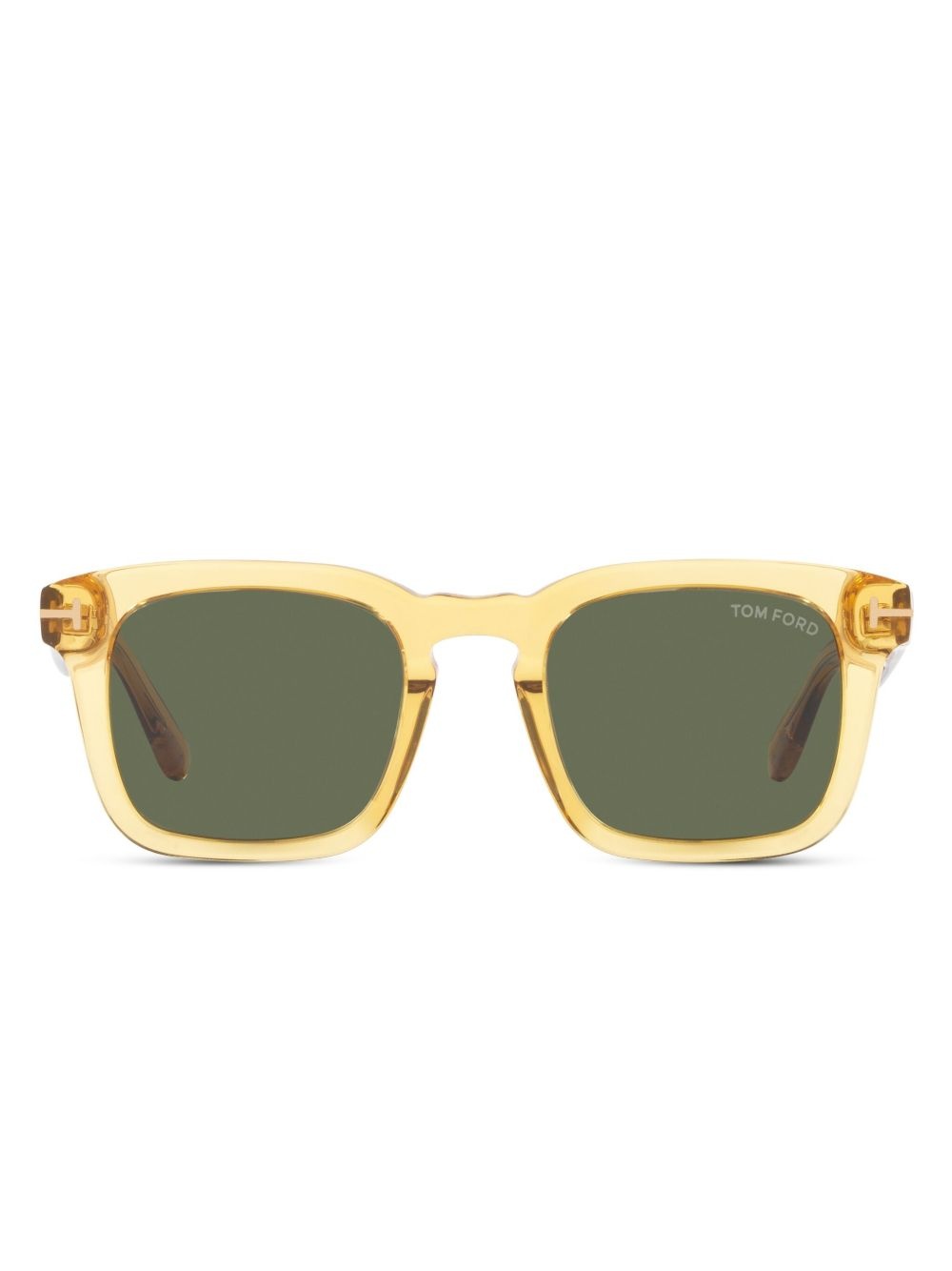 TR001097 square-frame sunglasses Highlights - Yellow - Transparent design - Green tinted lenses - Curved tips - These glasses come with a protective case. Made in United States Composition Acetate 100% SIZE & FIT Measurement Arm Length 5.7 in(14.5 cm) Bridge Width 0.86 in(2.2 cm) Lens Diameter 1.96 in(5 cm)