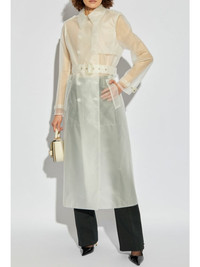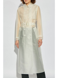 transparent belted trench coat Highlights - White - Transparent design - Belted waist - Double-breasted button fastening - Spread collar - Long sleeves - Belted cuffs - Two side flap pockets - Straight hem - Below-knee length Made in Italy Composition Polyurethane 100%