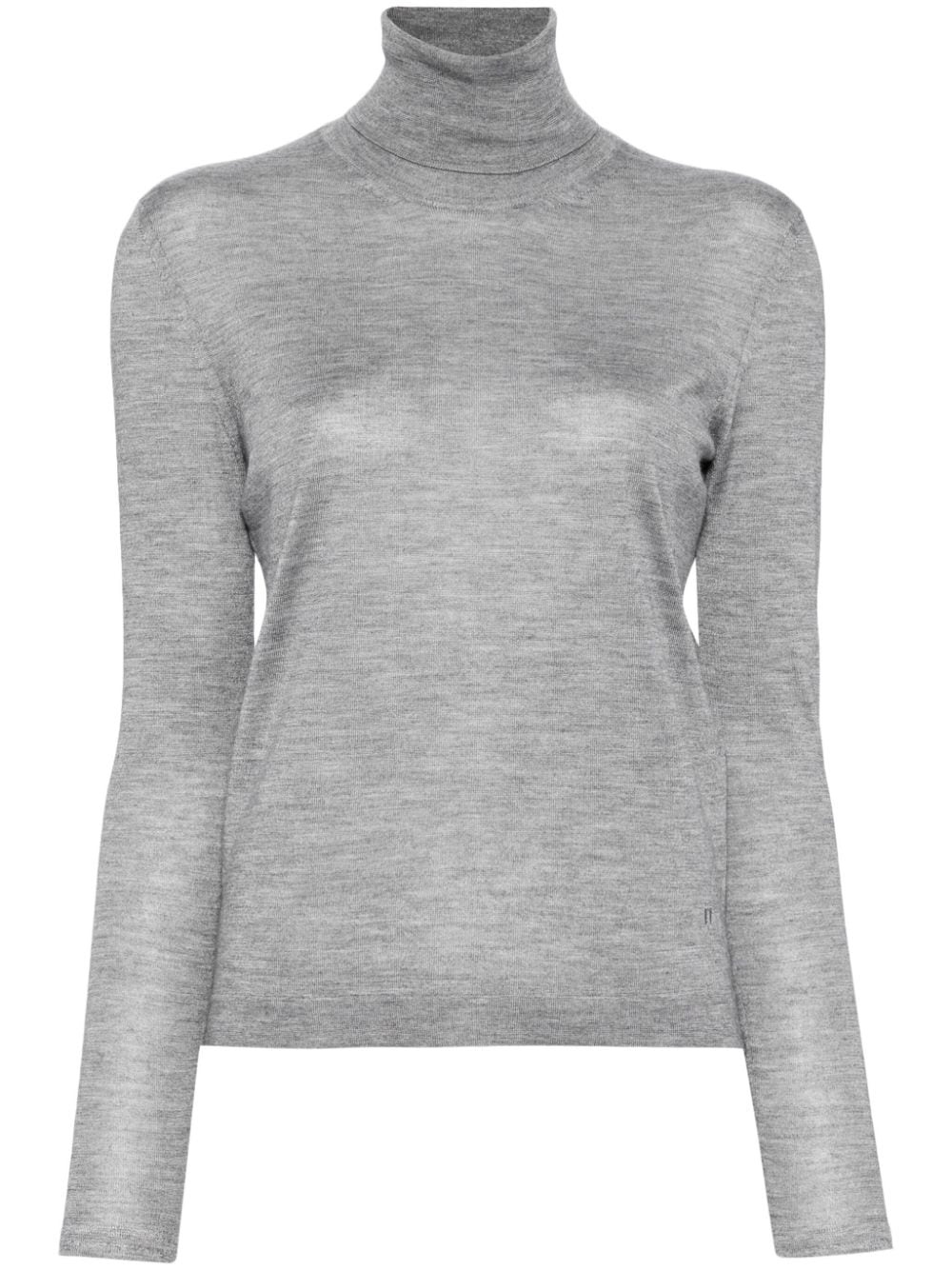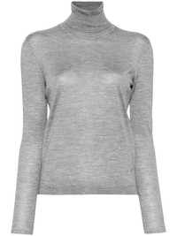 turtleneck knitted top Highlights - Mid grey melange - Cashmere-silk blend - Fine knit - Melange effect - Embroidered logo to the side - Roll neck - Long sleeves Made in Italy Composition Cashmere 70%, Silk 30% SIZE & FIT Model measurements Height 5 ft 10 in(1.77 m) Bust/Chest 27.95 in(71 cm) Hips 34.64 in(88 cm) Waist 22.83 in(58 cm) FittingInformation Designed for a slim fit that sits just away from the body offering a close yet comfortable fit Made with a midweight knit, this piece offers some stretch This piece fits true to size – take your usual size Washing instructions Dry Clean Only