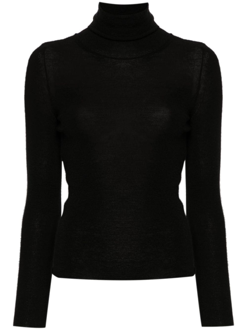 roll-neck fine-knit jumper Highlights - Black - Cashmere-silk blend - Fine knit - High neck - Long sleeves - Straight hem Made in Italy Composition Cashmere 70%, Silk 30% SIZE & FIT Model measurements Height 5 ft 10 in(1.78 m) Bust/Chest 33.07 in(84 cm) Hips 36.61 in(93 cm) Waist 24.8 in(63 cm) FittingInformation Designed for a close fit throughout Made with a lightweight knit, this piece offers some stretch This piece fits true to size – take your usual size