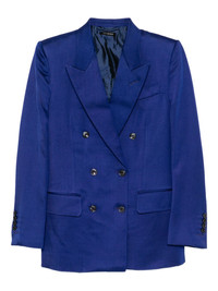 twill double-breasted blazer Highlights - Royal blue - Front button fastening - Two front flap pockets - Rear slit Made in Italy Composition Lining: Cupro 59%, Silk 41% Outer: Silk 51%, Wool 49% SIZE & FIT Model measurements Height 5 ft 10 in(1.78 m) Bust/Chest 31.88 in(81 cm) Hips 37 in(94 cm) Waist 25.19 in(64 cm) FittingInformation Designed for a slim fit that sits just away from the body offering a close yet comfortable fit The internal shoulder pads offer a structured shape Made from a midweight non-stretch fabric Washing instructions Dry Clean Only