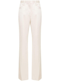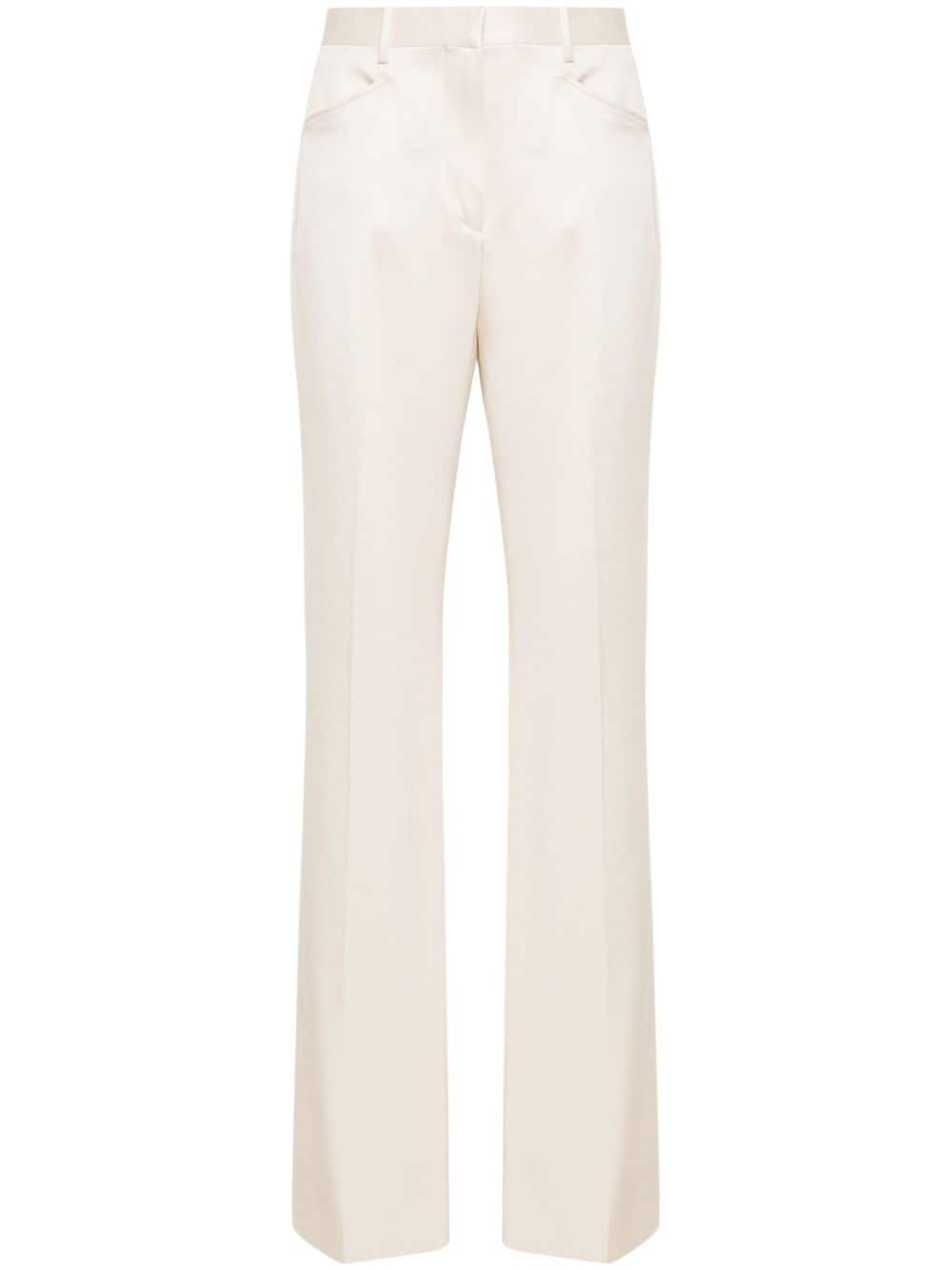 pressed-crease trousers Highlights - Ivory white - Silk-wool blend - Twill weave - Tailored cut - Belt loops - Two rounded pockets to the sides - Pressed crease - Two rear button-fastening jetted pockets - Bootcut - Concealed front button, hook and zip fastening Made in Italy Composition Lining: Cupro 59%, Silk 41% Outer: Silk 59%, Wool 41% SIZE & FIT Model measurements Height 5 ft 10 in(1.78 m) Bust/Chest 33.07 in(84 cm) Hips 36.61 in(93 cm) Waist 24.8 in(63 cm) Measurement FRONT RISE 11.61 in(29.5 cm) INSIDE LEG 35.43 in(90 cm) HIPS 40.15 in(102 cm) WAIST 33.07 in(84 cm) FittingInformation Designed for a straight-leg fit, these trousers allow for a close fit at the waist and an unrestricted, comfortable fit over the leg Made from a midweight non-stretch fabric This piece fits true to size – take your usual size