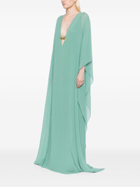 DEEP V-NECK EVENING DRESS WITH METAL HARDWARE DETAIL