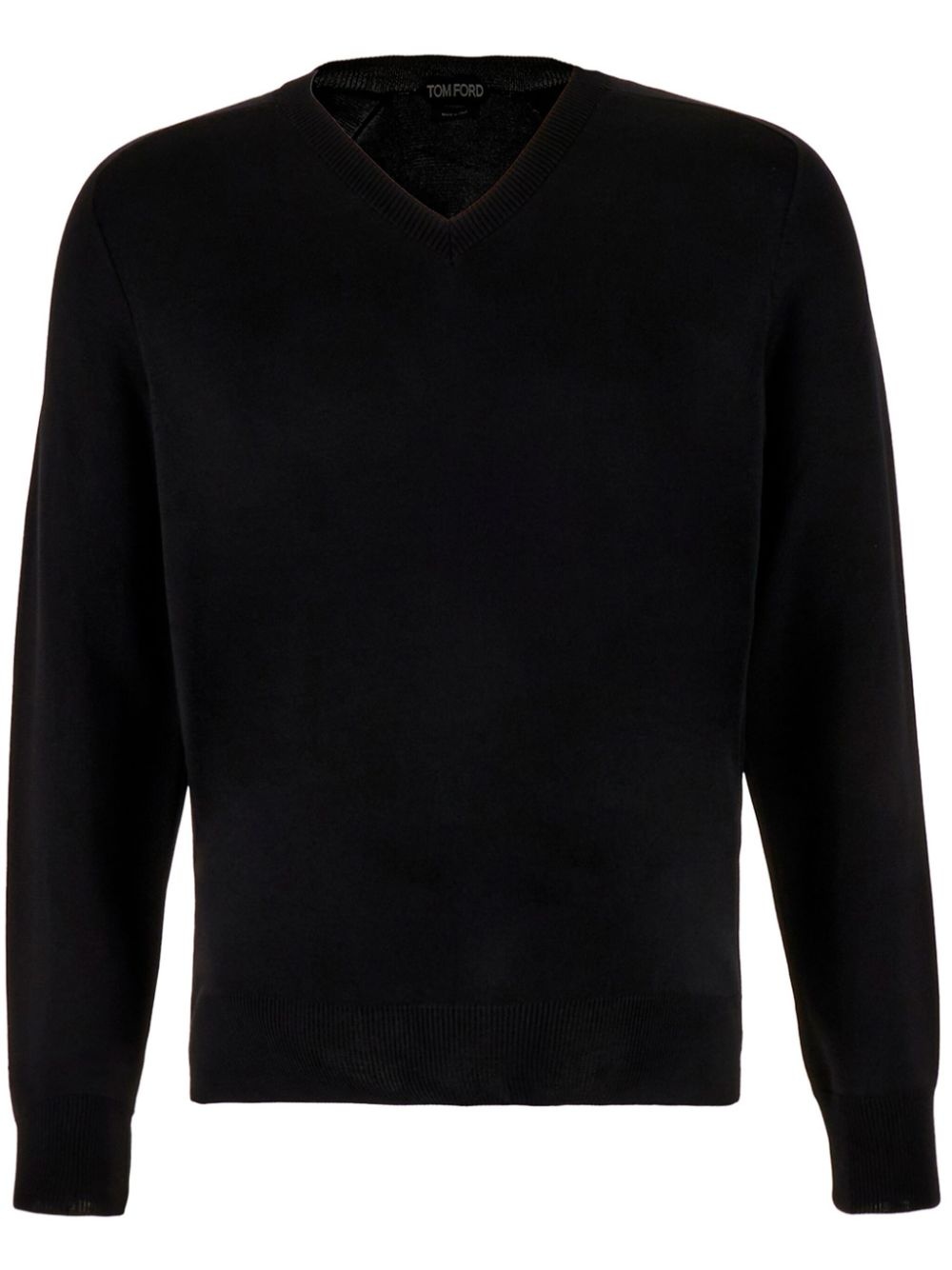 V-neck jumper Highlights - Black - Silk blend - Knitted construction - V-neck - Long raglan sleeves - Ribbed trim - Straight hem Made in Italy Composition Silk 94%, Nylon 5%, Polyurethane 1%