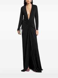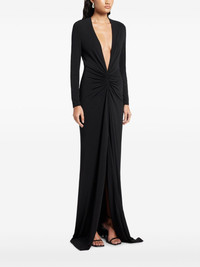 STRETCH SABLE' JERSEY DEEP V-NECK EVENING DRESS