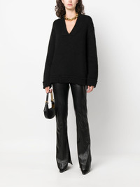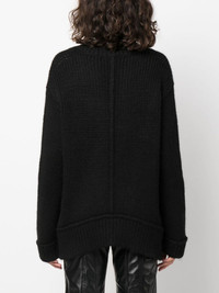 V-neck pullover jumper Highlights - Black - Alpaca wool-blend - Knitted construction - V-neck - Long sleeves - Ribbed cuffs and hem - Straight hem Made in Italy Composition Alpaca 68%, Polyamide 22%, Wool 10% SIZE & FIT Model measurements Height 5 ft 9 in(1.76 m) Bust/Chest 33.07 in(84 cm) Hips 34.64 in(88 cm) Waist 25.59 in(65 cm) FittingInformation Designed to be unstructured, offering a loose fit throughout Made with a midweight knit, this piece offers some stretch This piece fits true to size – take your usual size Measurement SLEEVE LENGTH 17.71 in(45 cm) LENGTH 23.62 in(60 cm) BUST 46.45 in(118 cm)