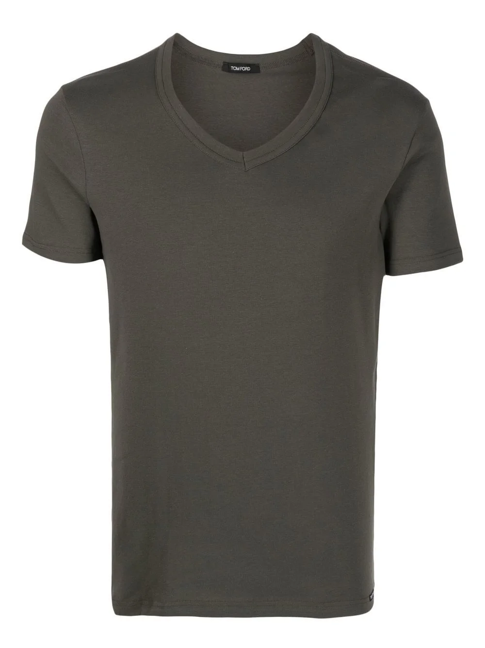V-neck short-sleeve T-shirt military green stretch-cotton jersey knit mini logo tag V-neck short sleeves straight hem Imported Composition Cotton 95%, Elastane 5% SIZE & FIT Measurement CHEST 38.58 in(98 cm) SLEEVE LENGTH 7.48 in(19 cm) LENGTH 25.19 in(64 cm) Shoulder Width 16.14 in(41 cm) Washing instructions Machine Wash