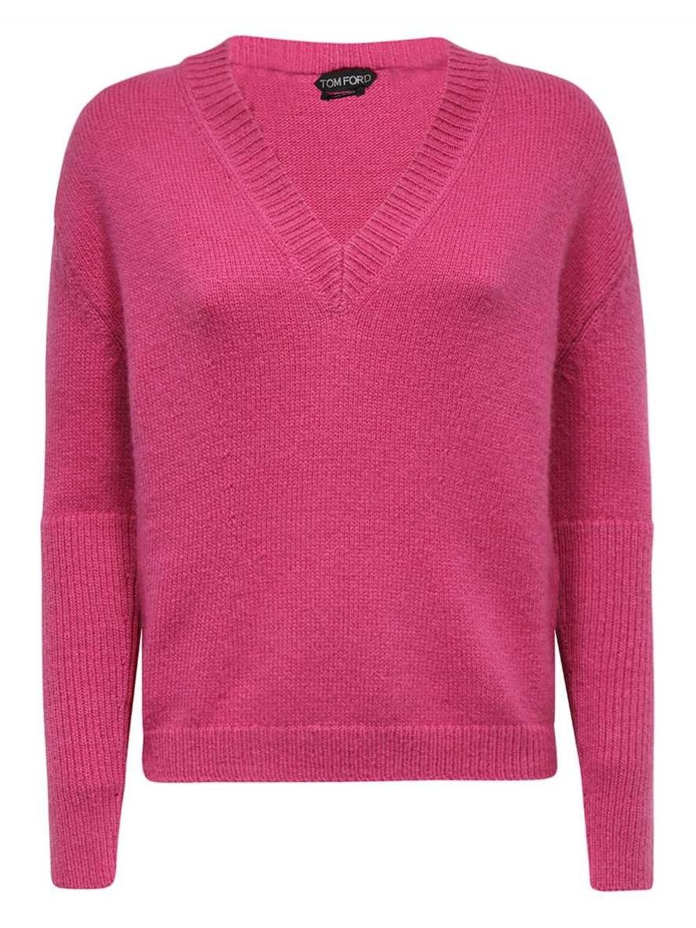 V-neck sweater Highlights - Fuchsia pink - Ribbed trim - Long sleeves Made in Italy Composition Wool 50%, Polyamide 40%, Cashmere 10%