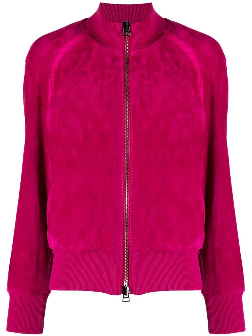 velvet track jacket An elevated take on a sporty silhouette, this TOM FORD track jacket is crafted from velvet – a reference to noughties styles. Two pockets at the sides offer added practicality to the fuchsia pink design. Highlights - Fuchsia pink - Stretch-design - Velvet - High neck - Front two-way zip fastening - Long raglan sleeves - Two side slit pockets - Ribbed edge - Straight hem Made in Italy Composition Lining: Viscose 57%, Polyamide 39%, Elastane 4% Silk 97%, Elastane 3% Outer: Buffalo Leather 100%, Polyamide 98%, Elastane 2% SIZE & FIT Model measurements Height 5 ft 10 in(1.77 m) Bust/Chest 31.49 in(80 cm) Hips 35.43 in(90 cm) Waist 25.19 in(64 cm) FittingInformation Designed to be unstructured, offering a loose fit throughout The ribbed hem offers a close, comfortable fit Suede leather has a soft and treated construction offering some flexibility This piece fits true to size – take your usual size Washing instructions Specialist Cleaning