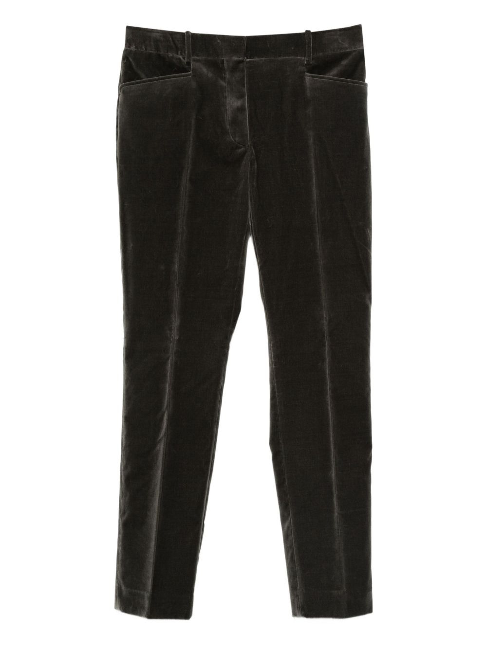 velvet trousers Highlights - Grey - Velvet texture - Front pockets - Mid-rise waist Made in Italy Composition Outer: Cotton 98%, Elastane 2% Lining: Cupro 59%, Silk 41% SIZE & FIT Model measurements Height 5 ft 10 in(1.78 m) Bust/Chest 33.46 in(85 cm) Hips 36.22 in(92 cm) Waist 23.22 in(59 cm) Washing instructions Dry Clean Only