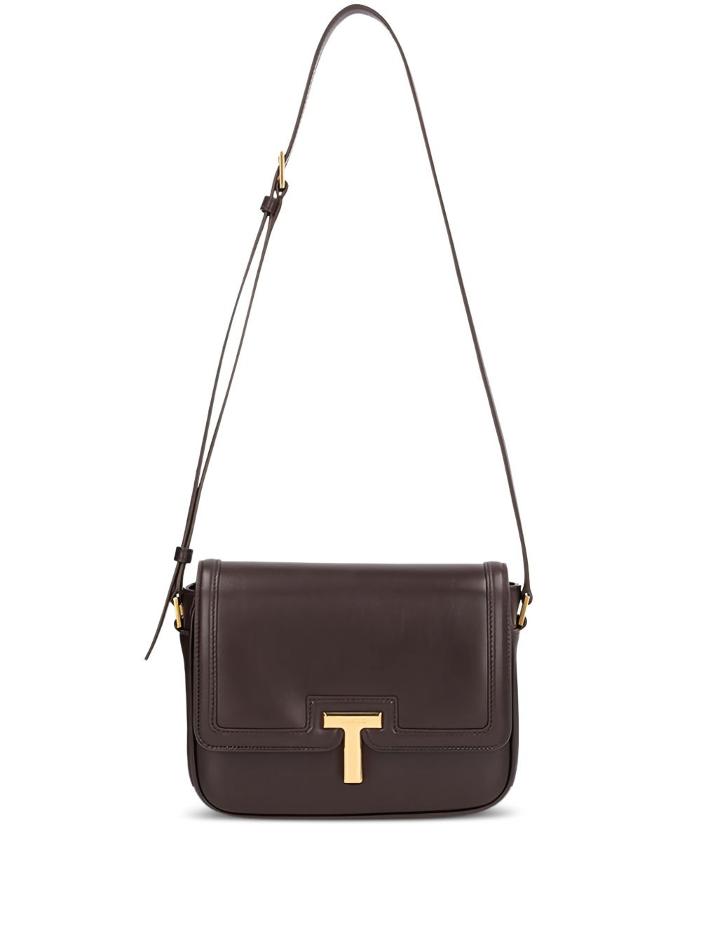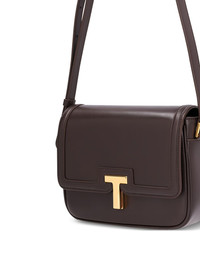 Wallis leather shoulder bag Highlights - Brown - Leather - T-plaque detail - Adjustable shoulder strap - Flap closure Made in Italy Composition Outer: Calf Leather 100% Lining: Sheepskin 100% SIZE & FIT Measurement DEPTH 2.16 in(5.5 cm) HEIGHT 7.08 in(18 cm) WIDTH 8.46 in(21.5 cm)