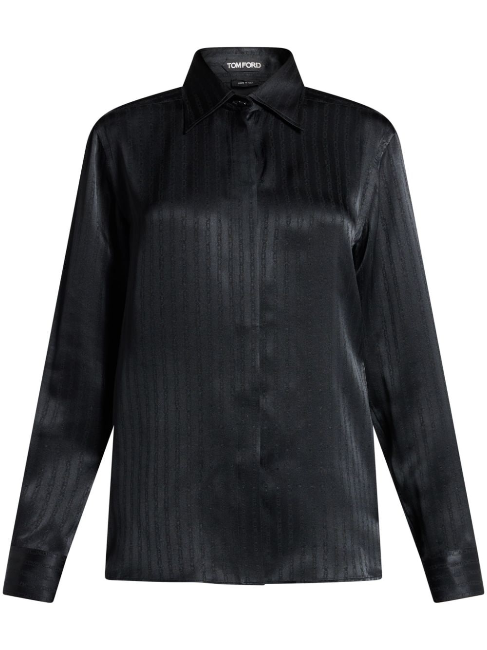 Whitney striped shirt Highlights - Black - Vertical stripe pattern - Concealed front button fastening - Pointed flat collar - Mother-of-pearl buttons - Long sleeves - Buttoned cuffs - Straight hem Made in Italy Composition Mother of Pearl 100%, Viscose 100% SIZE & FIT FittingInformation Designed to be unstructured, offering a loose fit throughout Made from a midweight non-stretch fabric