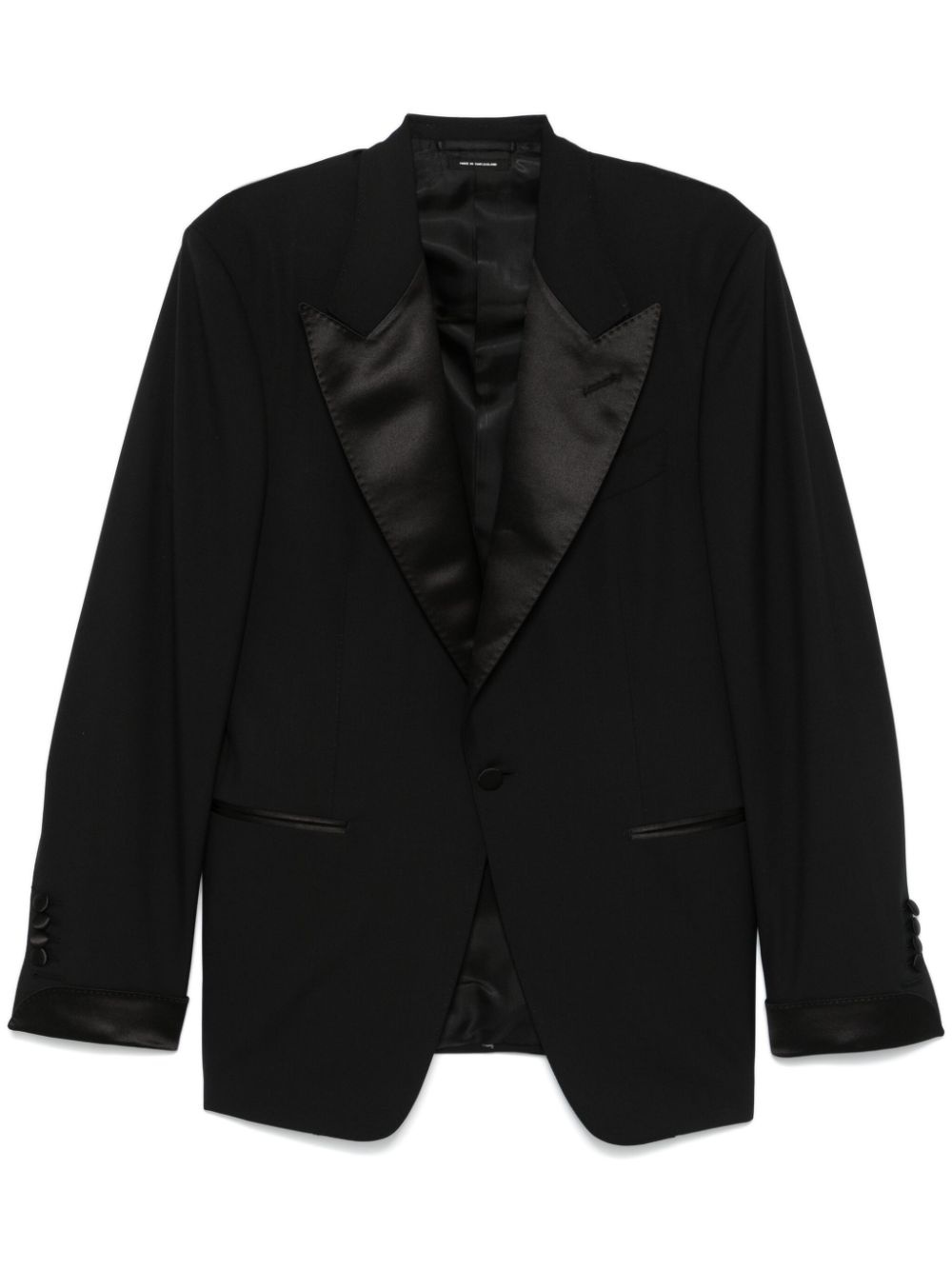wool blazer Highlights - Black - Front button fastening - Shoulder pads - Buttoned cuffs - American rear vent Imported Composition Outer: Wool 100% Lining: Cupro 59%, Silk 41% SIZE & FIT Model measurements Height 6 ft 2 in(1.87 m) Bust/Chest 38.18 in(97 cm) Hips 36.61 in(93 cm) Waist 29.13 in(74 cm) FittingInformation Designed for a slim fit, offering a comfortable fit that sits just away from the body The internal shoulder pads offer a structured shape Made from a midweight non-stretch fabric Washing instructions Dry Clean Only