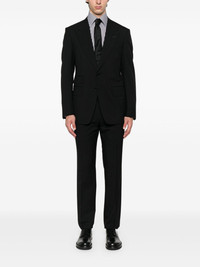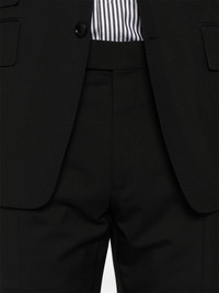 wool suit Highlights - Black - Front button fastening - Chest welt pocket - Three side flap pockets - Long sleeves Imported Composition Outer: Wool 100% Lining: Cotton 70%, Cupro 59%, Silk 41%, Viscose 20%, Modal 10% SIZE & FIT Model measurements Height 6 ft 2 in(1.88 m) Bust/Chest 37.4 in(95 cm) Hips 38.58 in(98 cm) Waist 31.1 in(79 cm) FittingInformation Tailored for a slim fit, this waistcoat sits just away from the body The unfinished hems allow for the length to be altered Made from a midweight non-stretch fabric