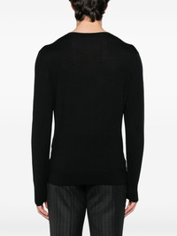 wool sweater Highlights - Black - Crew neck - Long sleeves - Ribbed cuffs and hem - Curved hem Made in Italy Composition Wool 100% SIZE & FIT Model measurements Height 6 ft 2 in(1.88 m) Bust/Chest 37.4 in(95 cm) Hips 38.58 in(98 cm) Waist 31.1 in(79 cm) FittingInformation Designed for a slim fit, offering a comfortable fit that sits just away from the body Made with a midweight knit, this piece offers some stretch