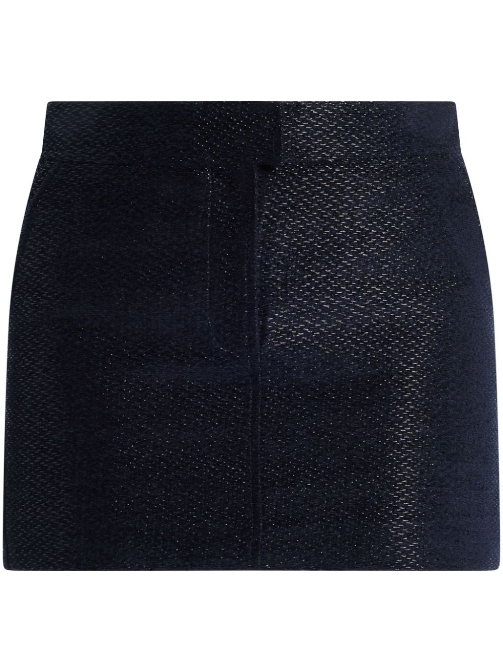 woven-design mini skirt Highlights - Midnight blue - Woven design - Mid-rise - Thigh-length - Concealed front zip fastening - Slip pockets to the sides - Full lining Made in Italy Composition Outer: Buffalo Horn 100%, Viscose 84%, Polyester 12%, Silk 4% Lining: Calf Leather 100%, Cotton 56%, Viscose 44%