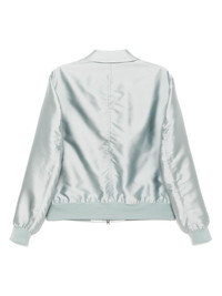 zip-up bomber jacket Highlights - Aqua blue - Front two-way zip fastening - Two side button-fastening pockets - Ribbed cuffs and hem Made in Italy Composition Outer: Polyester 85%, Silk 15%