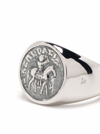 Alexander the Great coin signet ring Tom Wood takes inspiration from ancient Greece. Case in point: this oxidised sterling silver ring is a cast from an authentic ancient Greek coin and depicts Alexander the Great, who was the king of the ancient Greek kingdom of Macedon. Imported SIZE & FIT Model measurements Height 6 ft 2 in(1.88 m) Bust/Chest 36.61 in(93 cm) Hips 35.82 in(91 cm) Waist 27.95 in(71 cm) Measurement Band Width 0.19 in(0.5 cm) CIRCUMFERENCE 22.83 in(58 cm) Feature Length 0.62 in(1.6 cm) Feature Width 0.62 in(1.6 cm)
