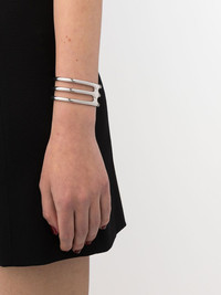 Cage Double cuff bracelet The Cage Double cuff bracelet is presented by Tom Wood in recycled sterling silver. The sculptural design creates a hugging illusion, as part of a collaboration with Norwegian electronica duo Royksopp. Imported Composition Recycled Sterling Silver 100%, Palladium 100% SIZE & FIT Model measurements Height 5 ft 11 in(1.8 m) Bust/Chest 31.49 in(80 cm) Hips 36.41 in(92.5 cm) Waist 25.59 in(65 cm) Measurement CIRCUMFERENCE 5.7 in(14.5 cm) WIDTH 1.18 in(3 cm)